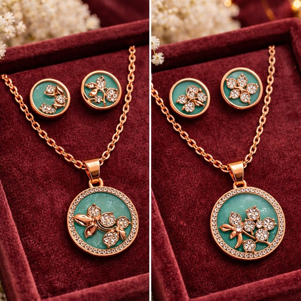 Be the first to review “Emerald Bloom Elegance Pendant Set”