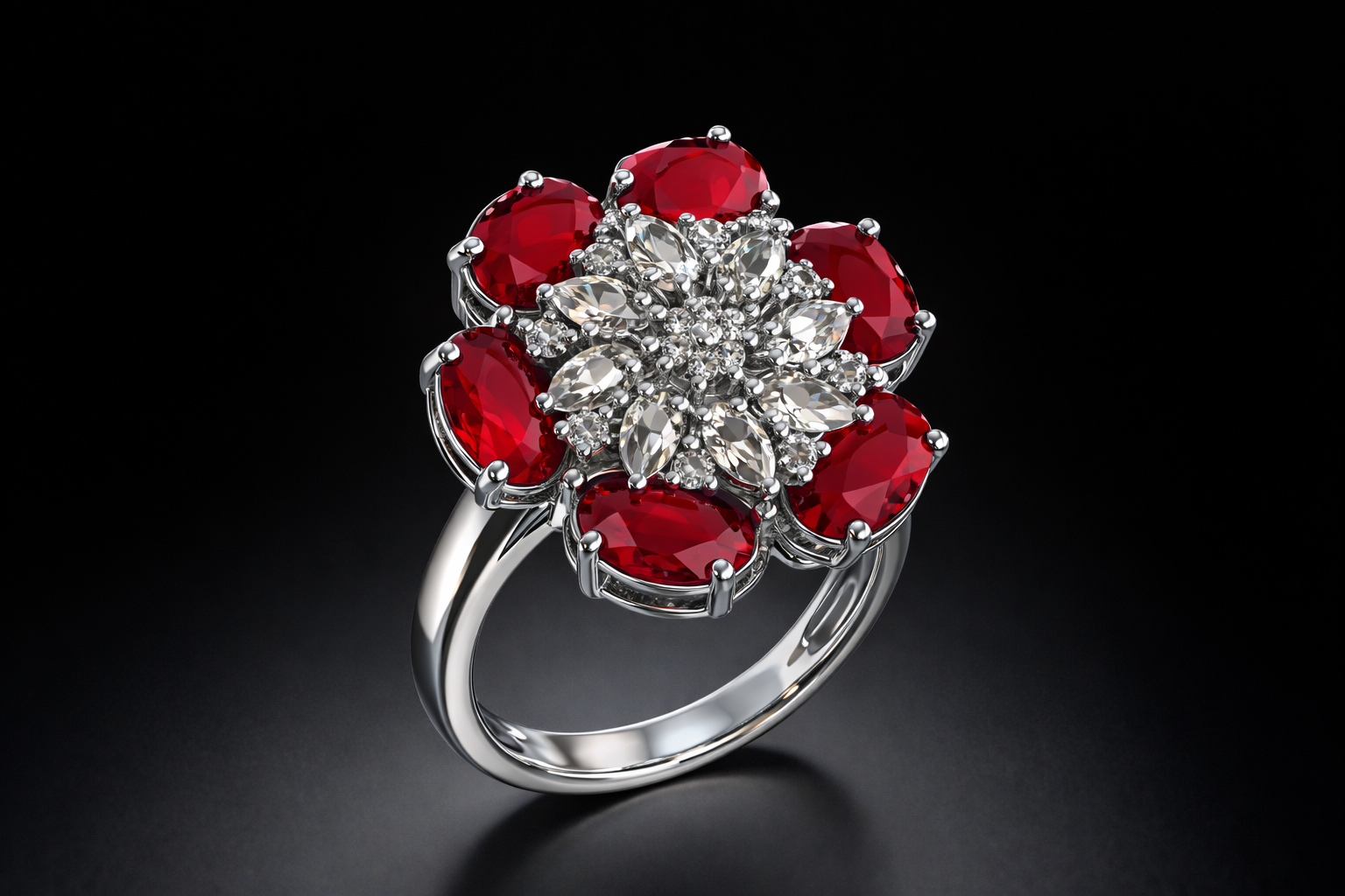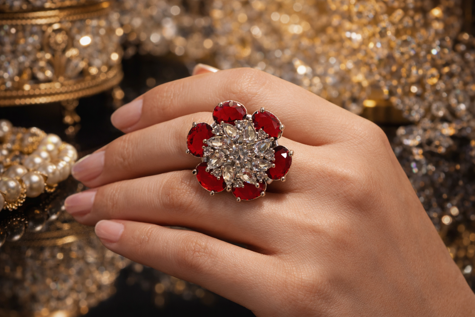 Red Floral Statement Ring